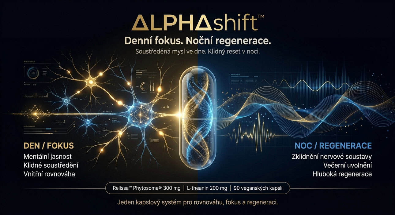 AlphaShift™ – Cílená podpora pro rovnováhu nervové soustavy, kognitivní jasnost a hluboký odpočinek.