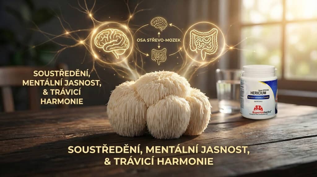 - Vykročení ze stresu (Osa mozek-střevo): Houby jako Reishi nebo Hericium (Lví hříva) zklidňují rozbouřenou mysl a zároveň regenerují střevní výstelku. Když se uklidní mozek, střevo začne lépe vstřebávat vitamíny.